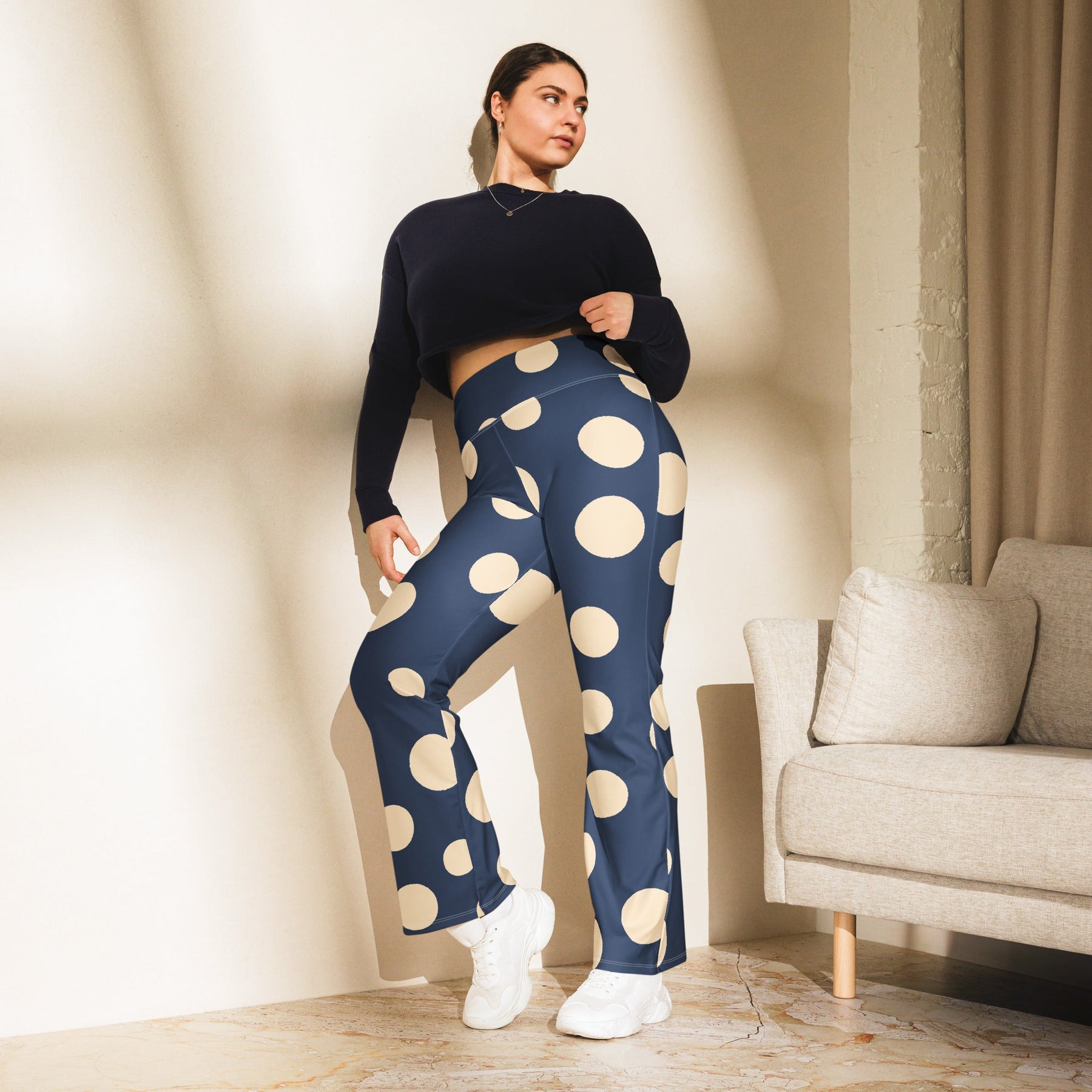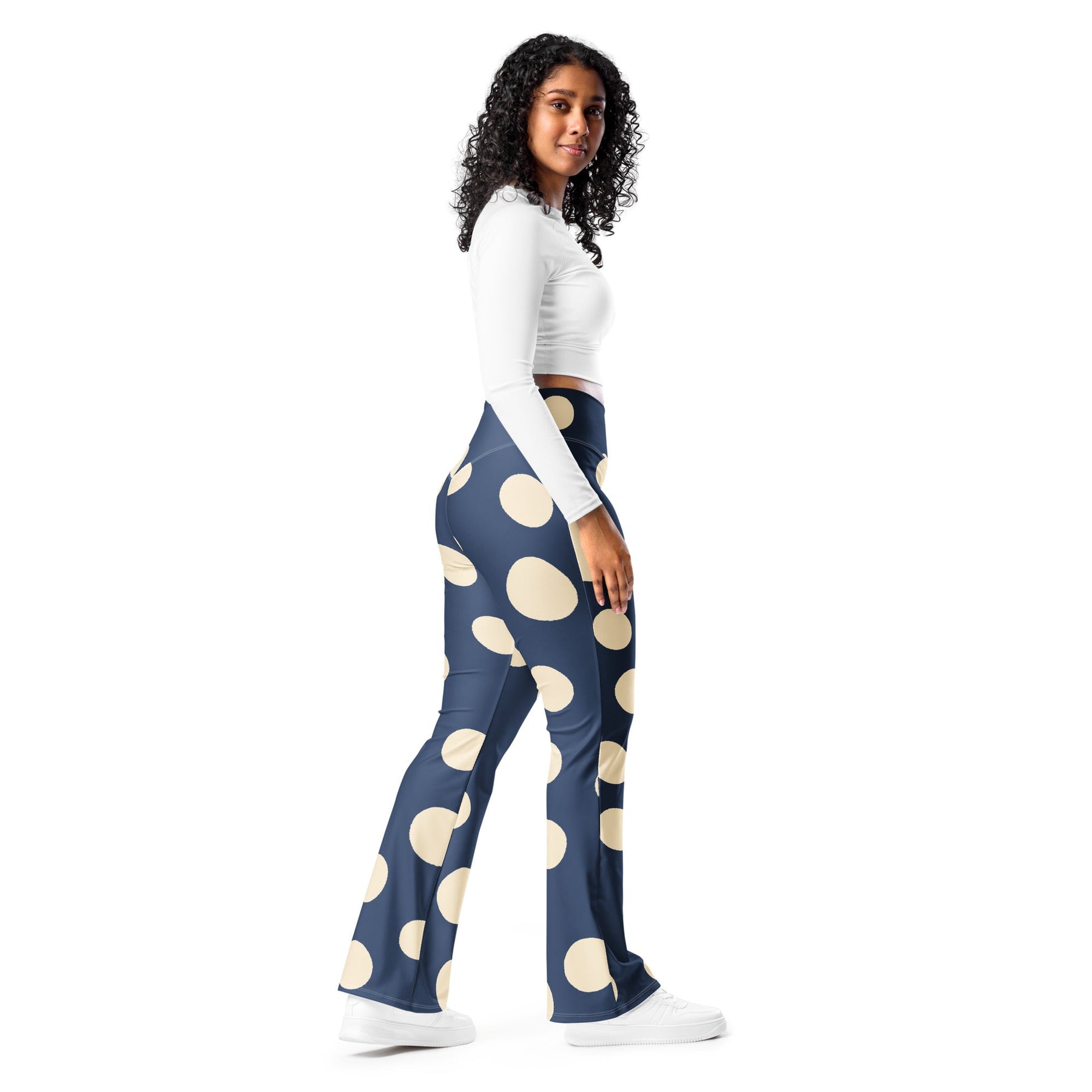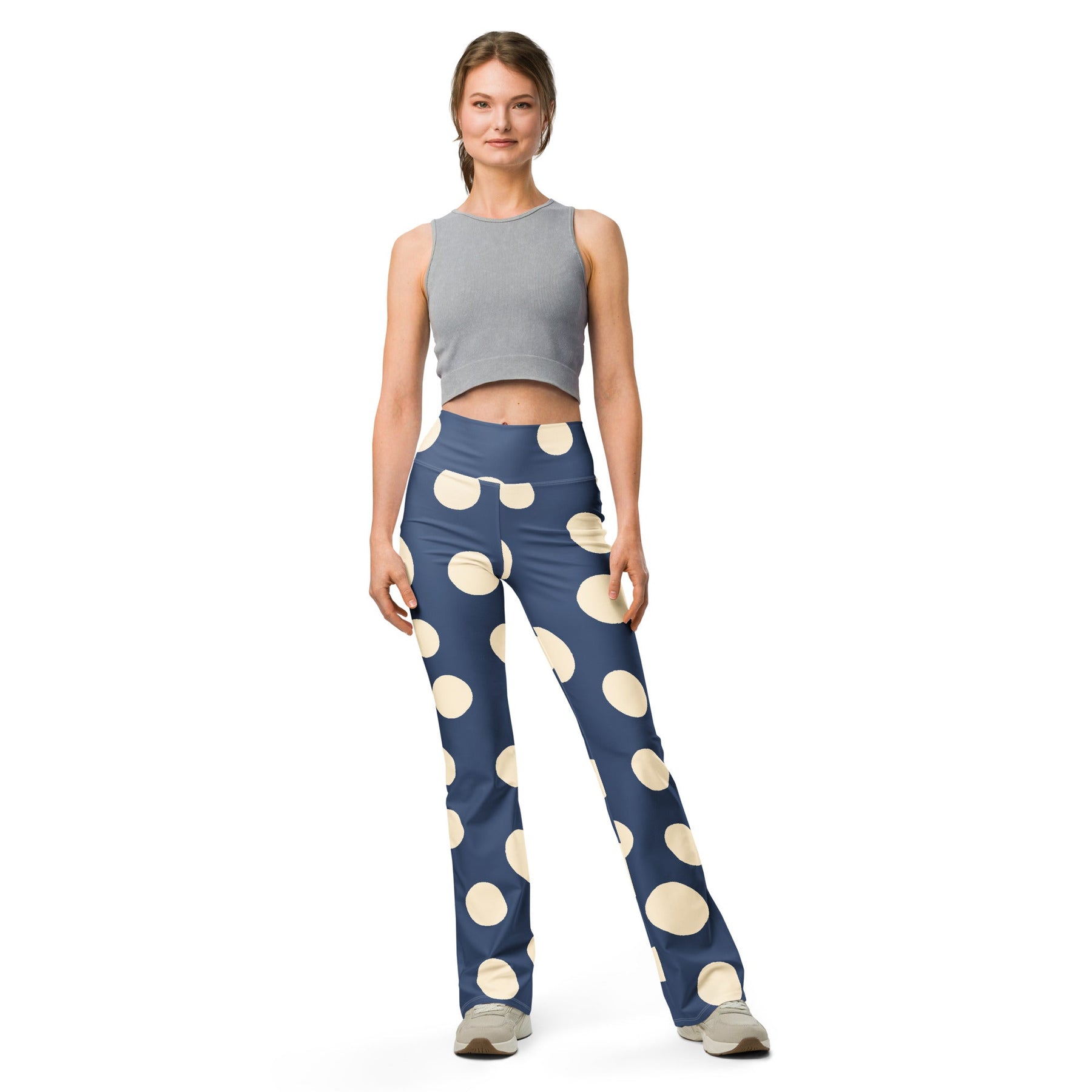 Designed to enhance your figure, these trendy leggings feature a high waist and a butt-lifting cut. The flared leg bottoms add a touch of style and make the leggings comfortable. Wear them on a walk, to the gym, or style them up with a bomber jacket or hoodie.
